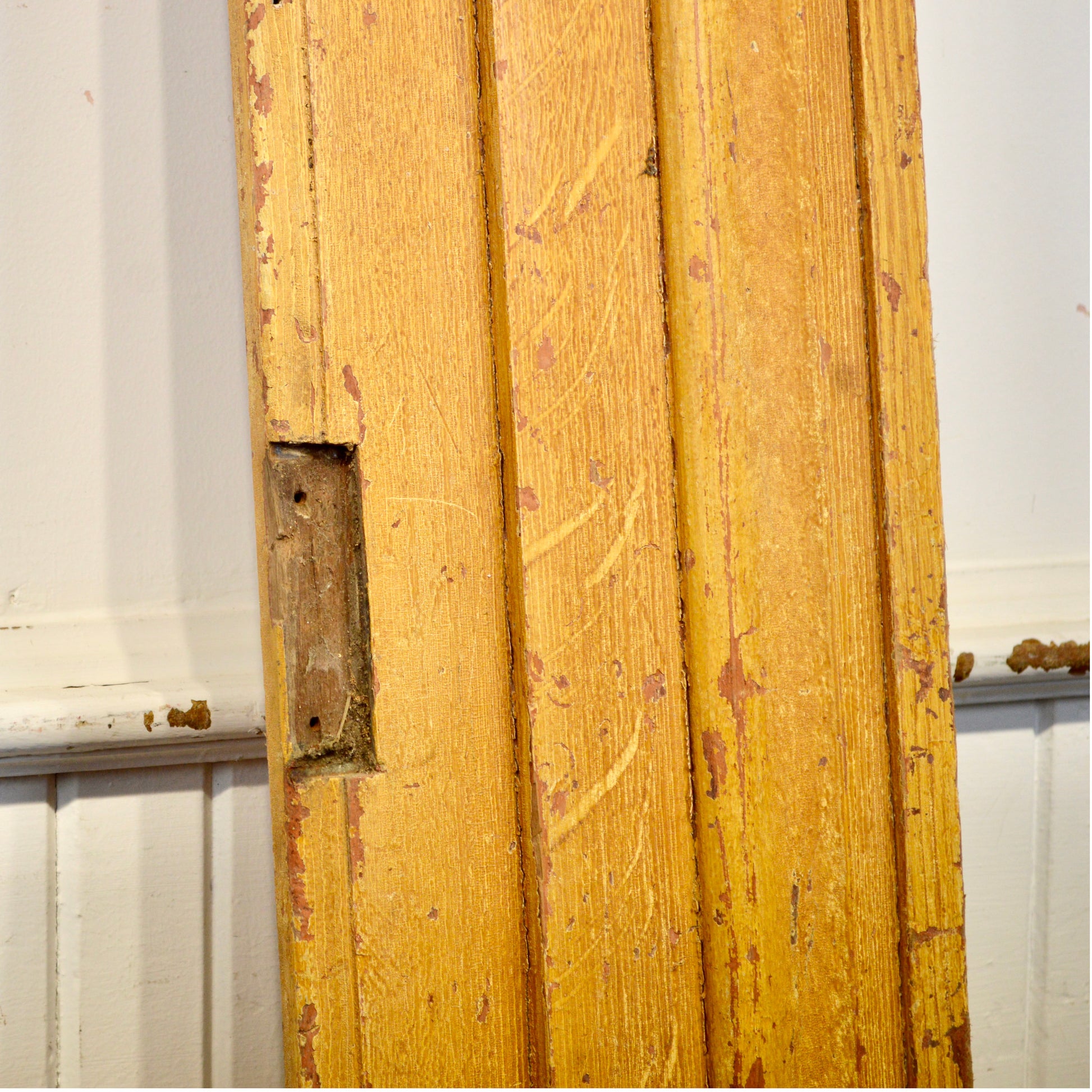 Pine door trim with original vinegar paint finish is ideal for framing an existing door or passageway. A wonderful option for a custom built-in bookcase or cutting down to frame a gas fireplace.