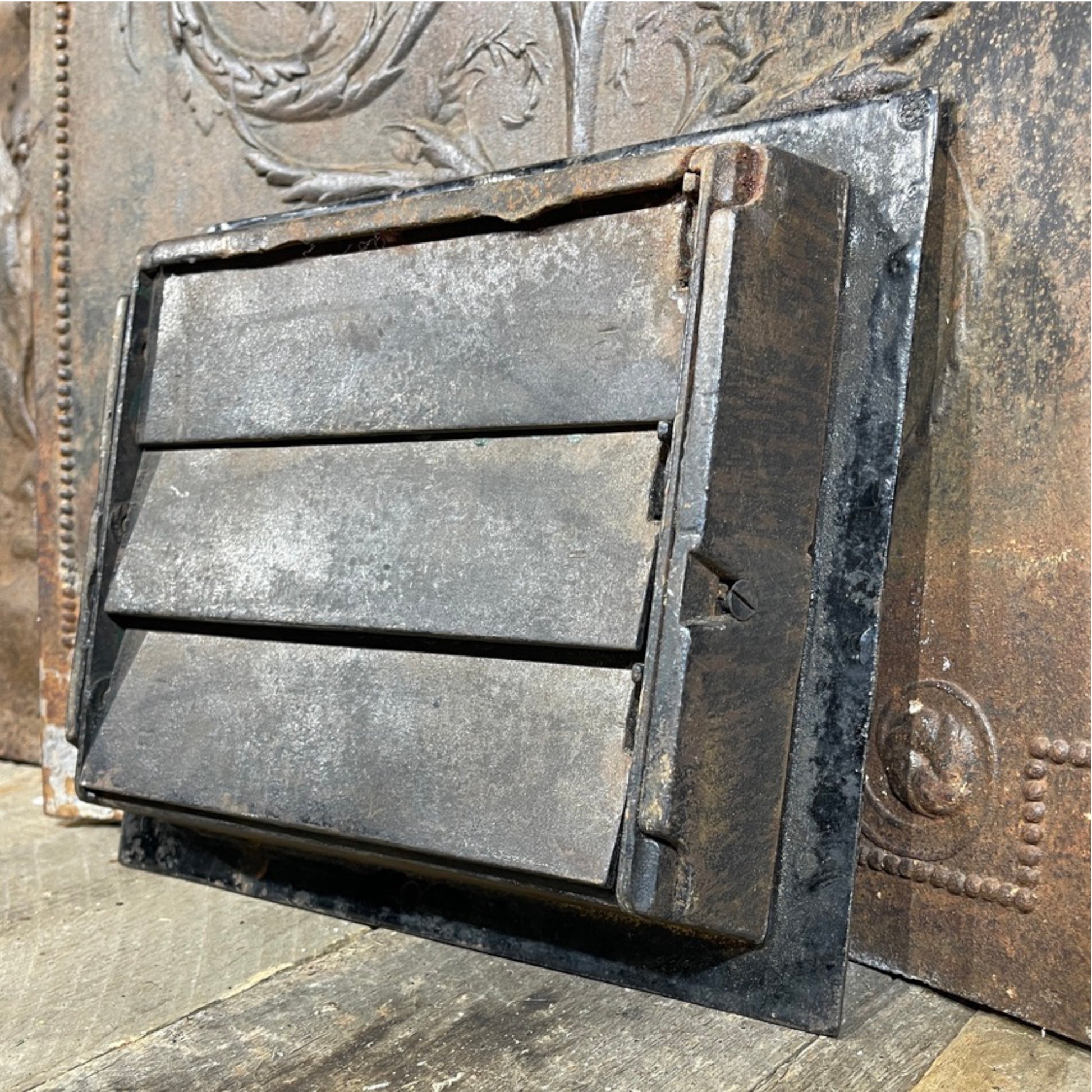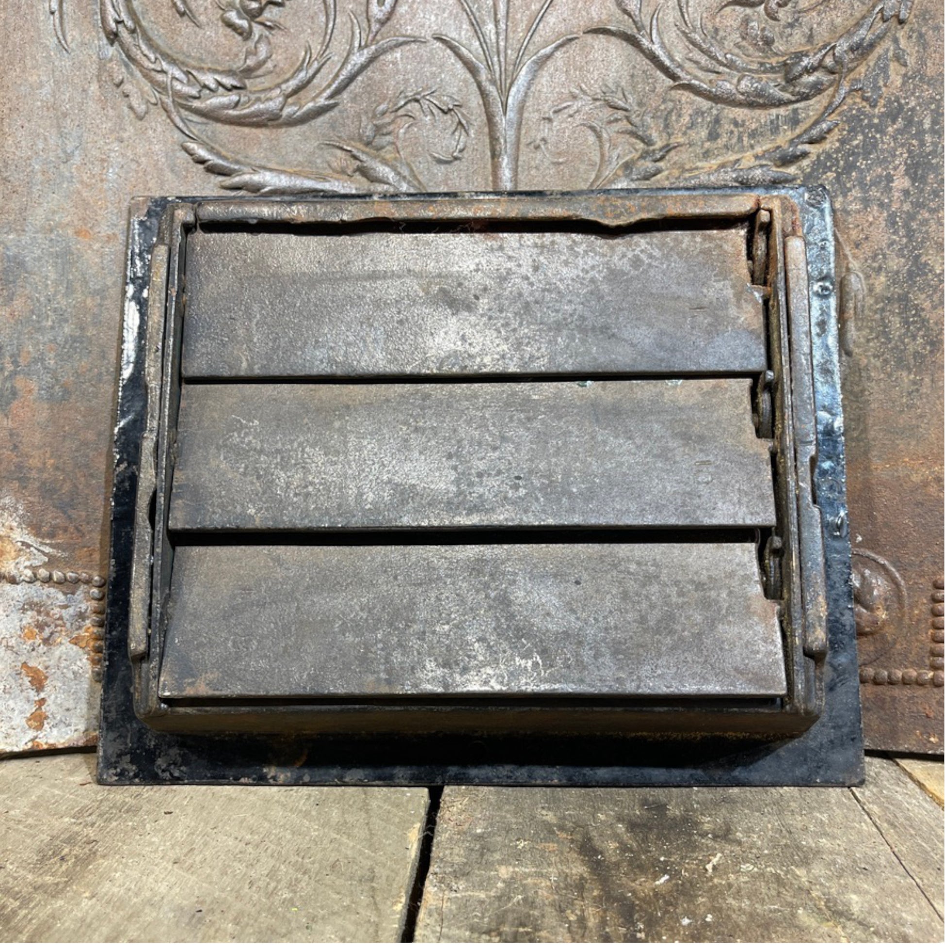 Cast iron heat grate in Victorian style. Sound condition with original iron baffles and no visible breaks or cracks. A wonderful replacement option or for a historically sensitive addition.