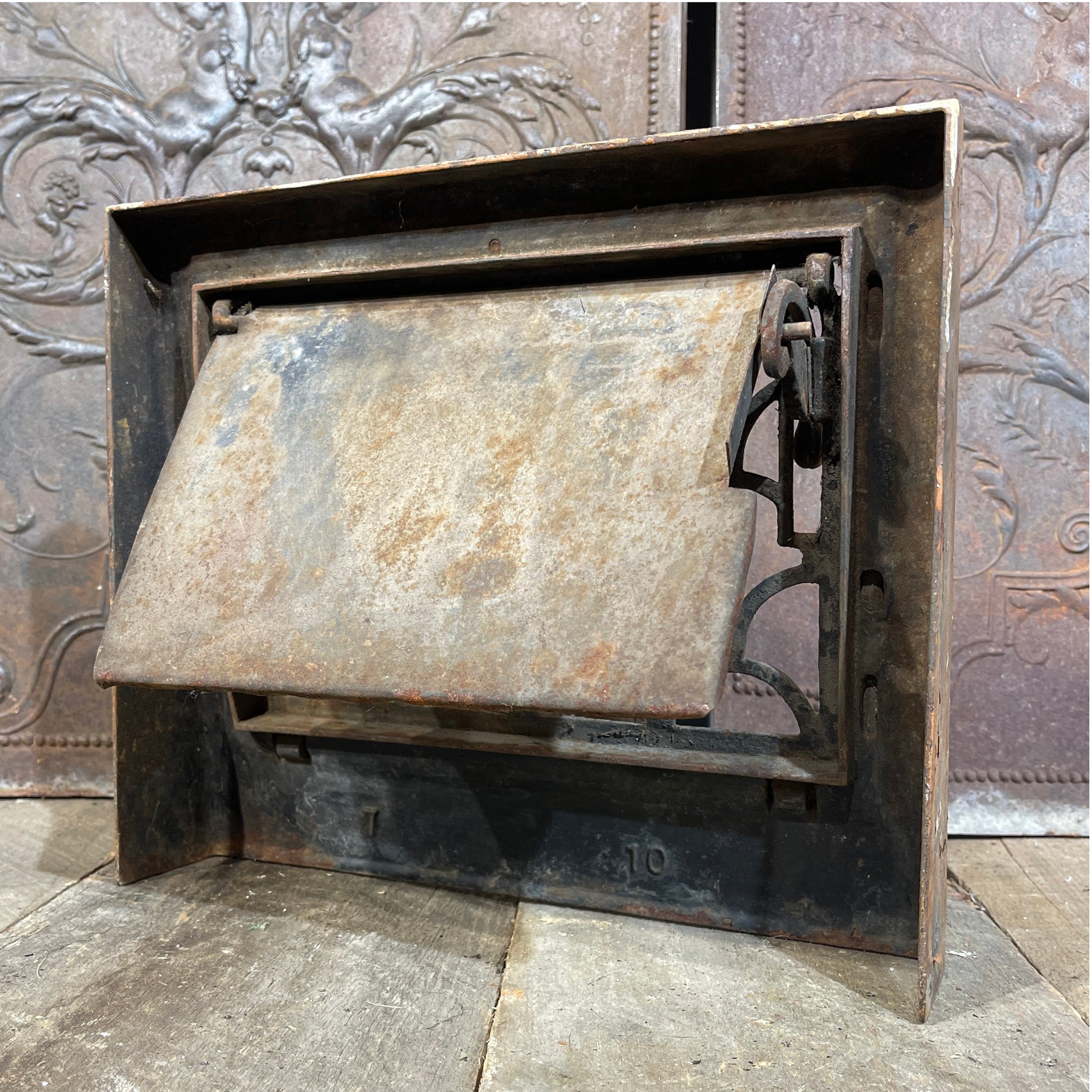 Lots of patina on this cast iron wall grate. Two antique vents available from the same home. Functioning baffle on this register.