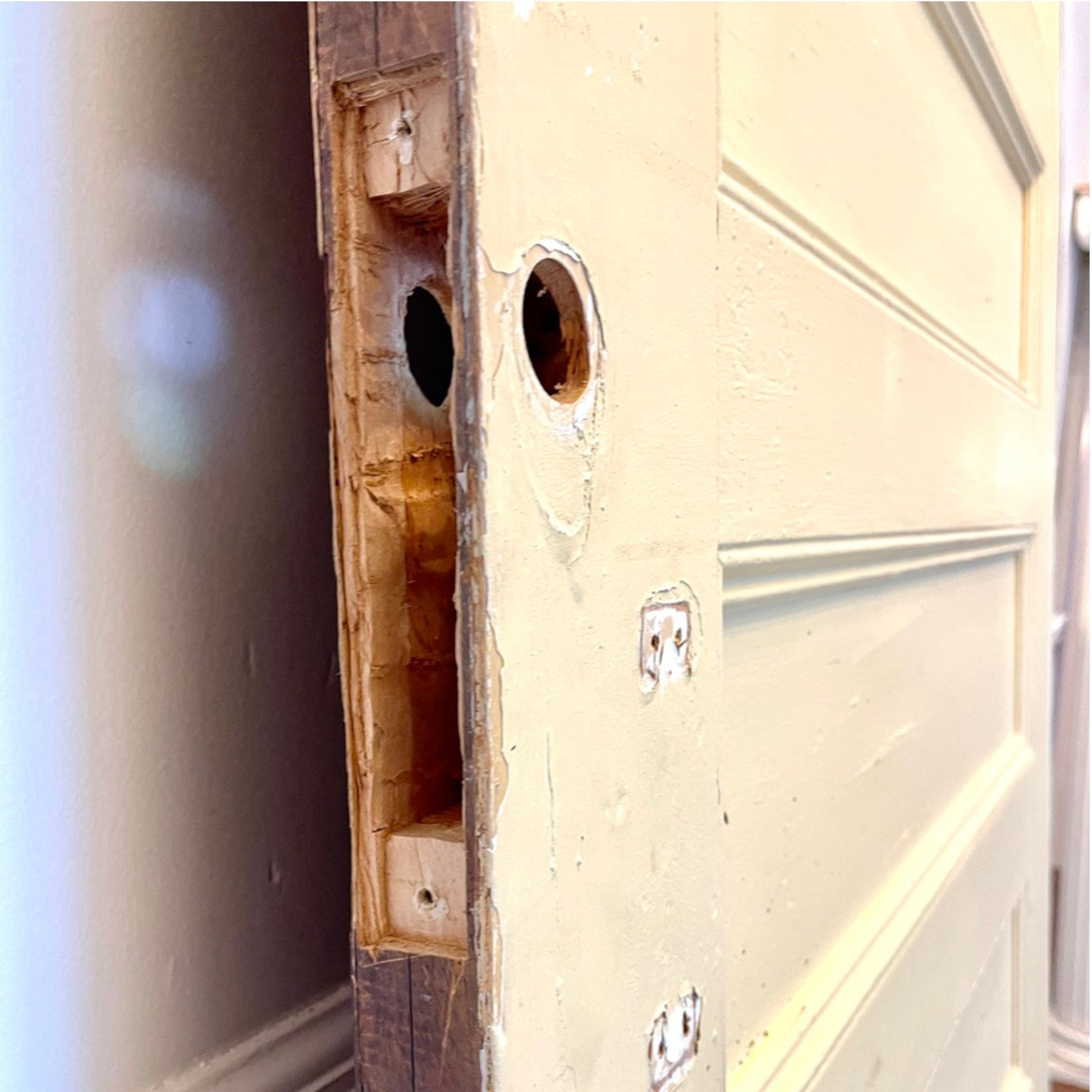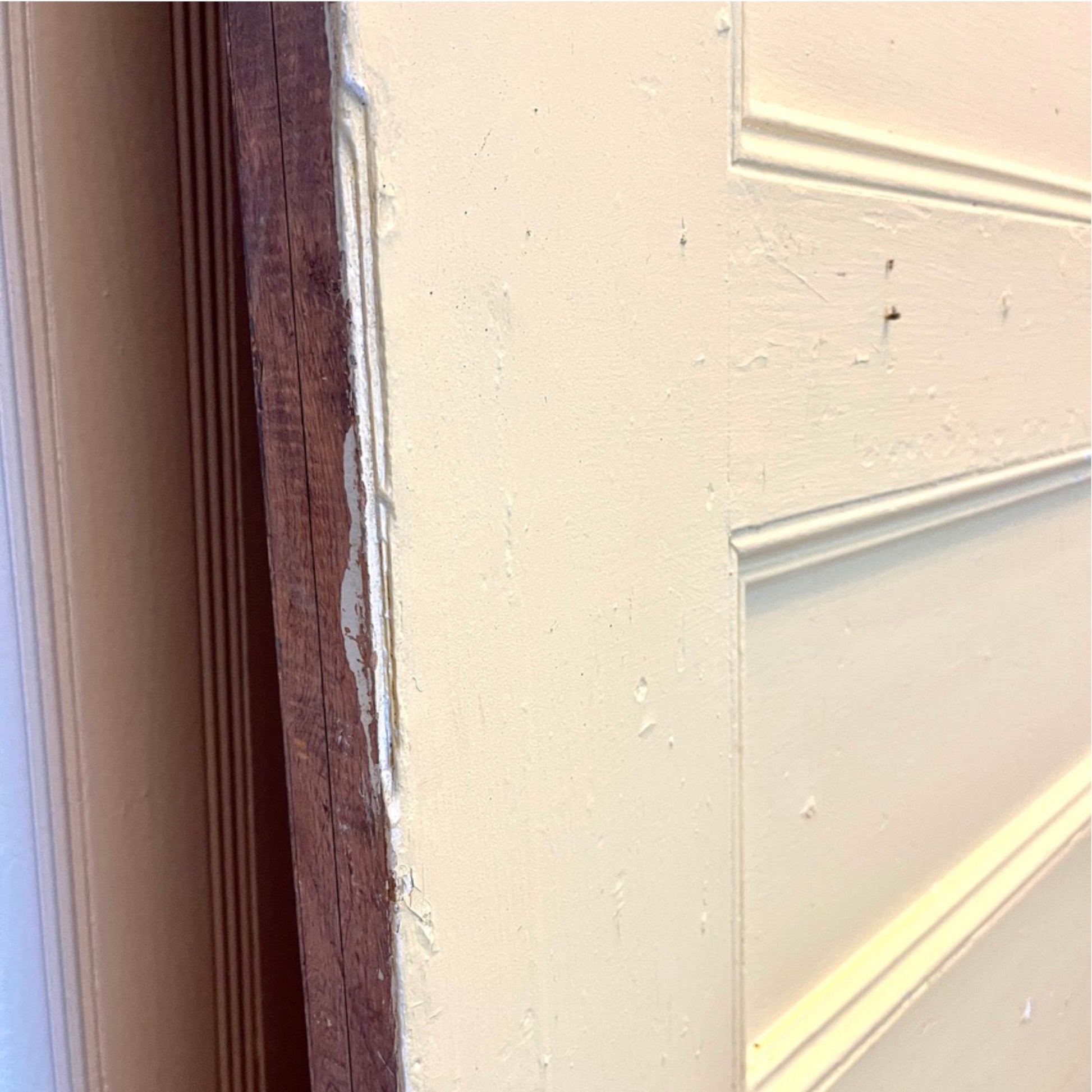 Constructed from solid maple, the door features six recessed panels framed by crisp moulded profiles typical of late Edwardian / early Colonial Revival interiors. One side retains its historic painted finish, while the opposite side has been stripped to reveal the warm grain and subtle figure of the maple beneath — a beautiful contrast that speaks to the layered life of the piece.