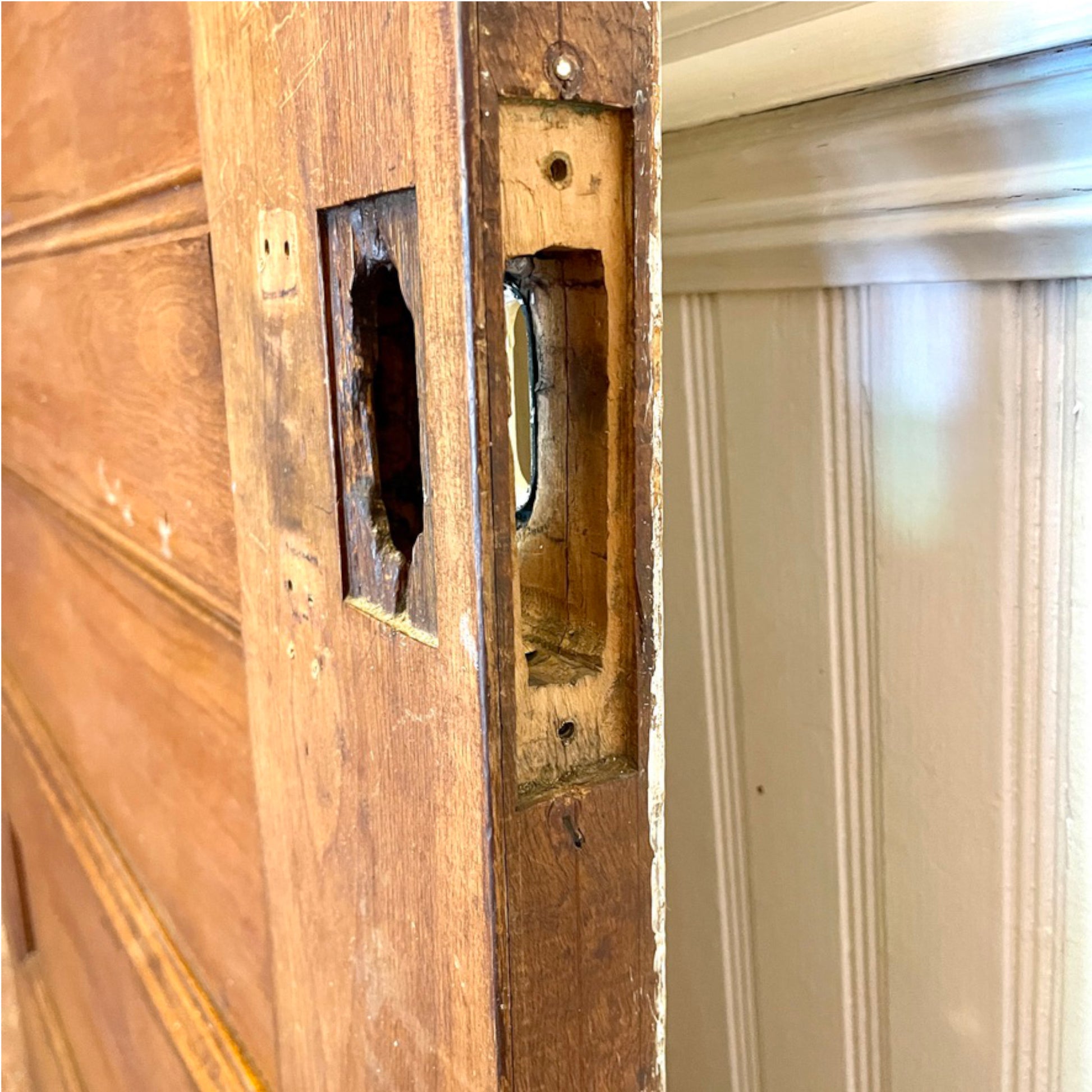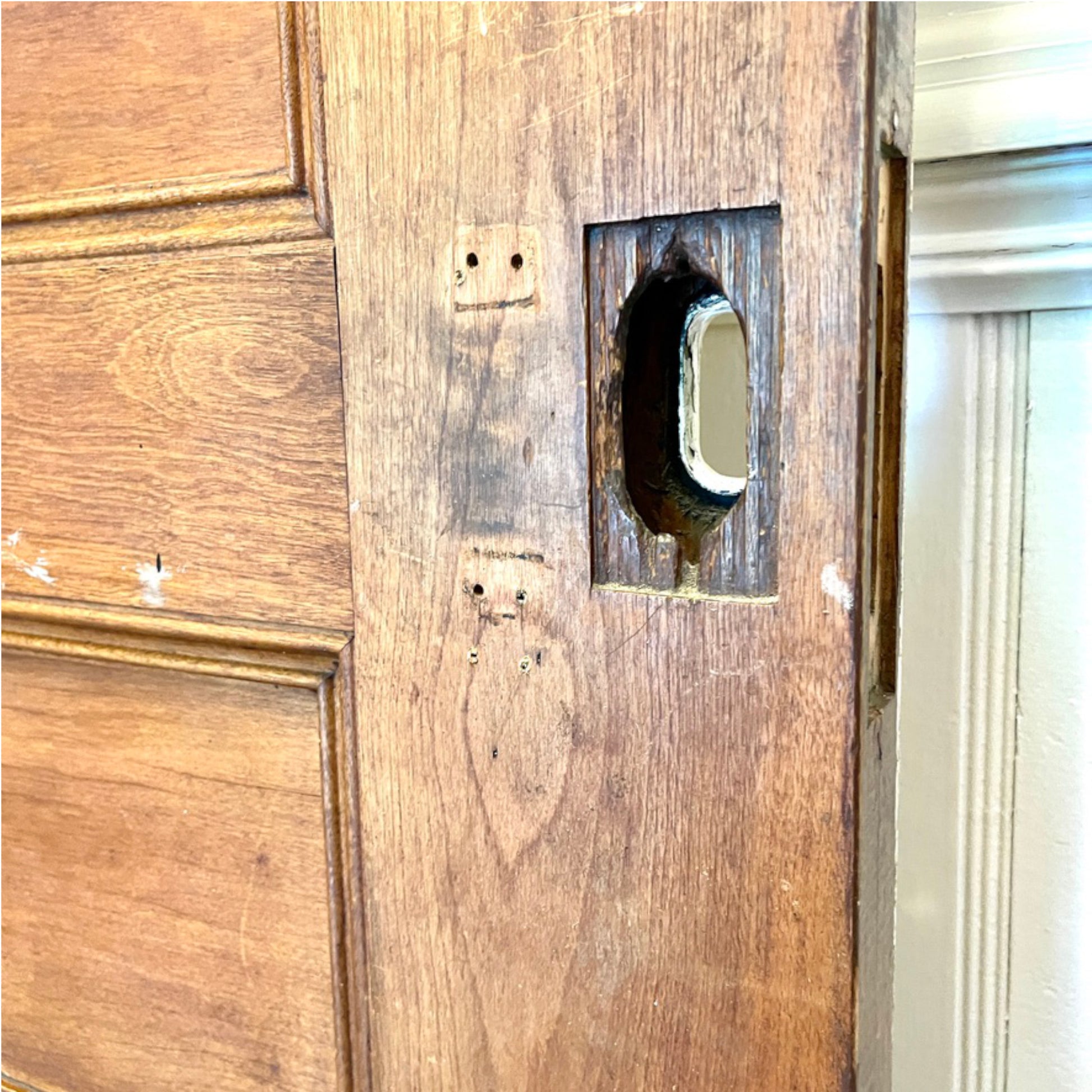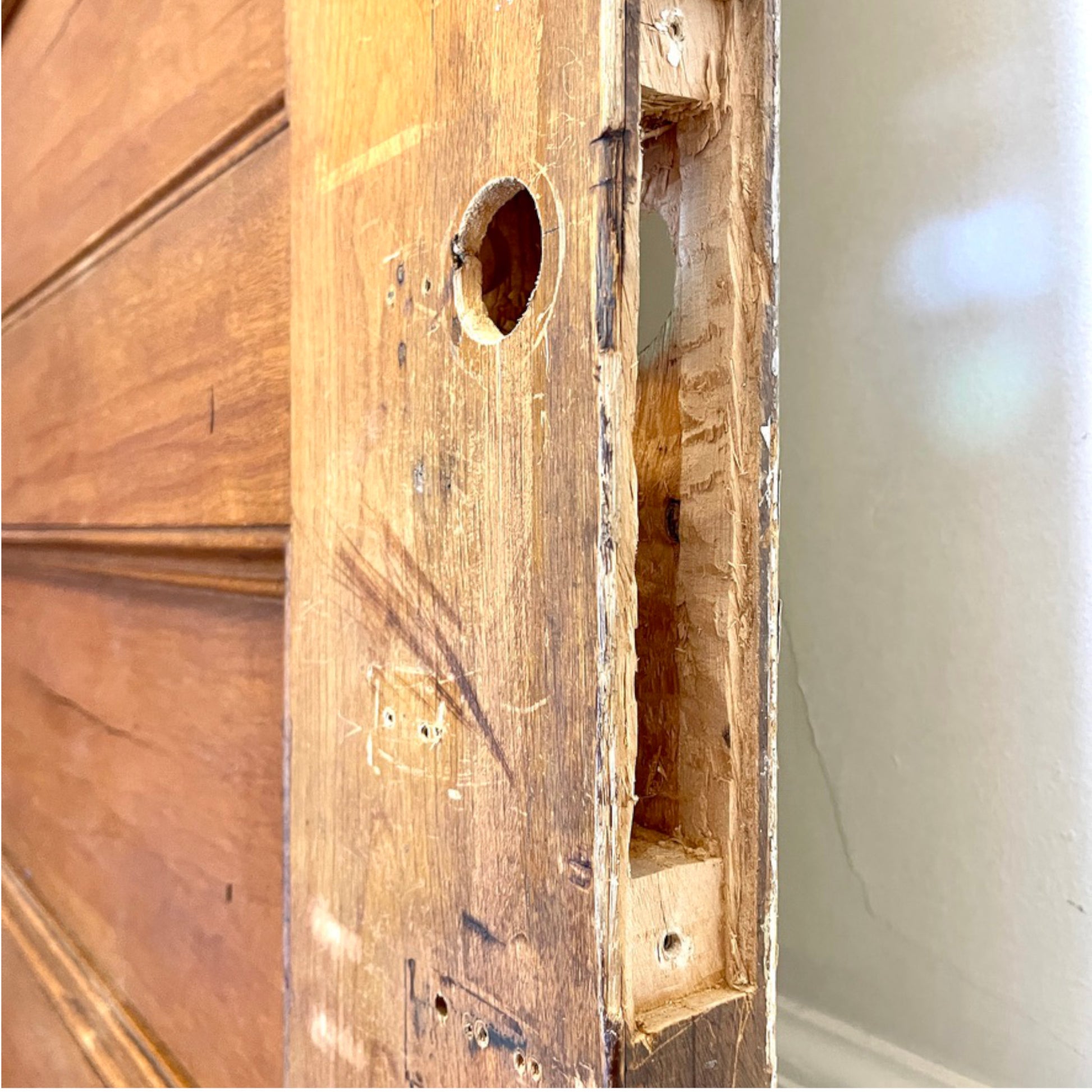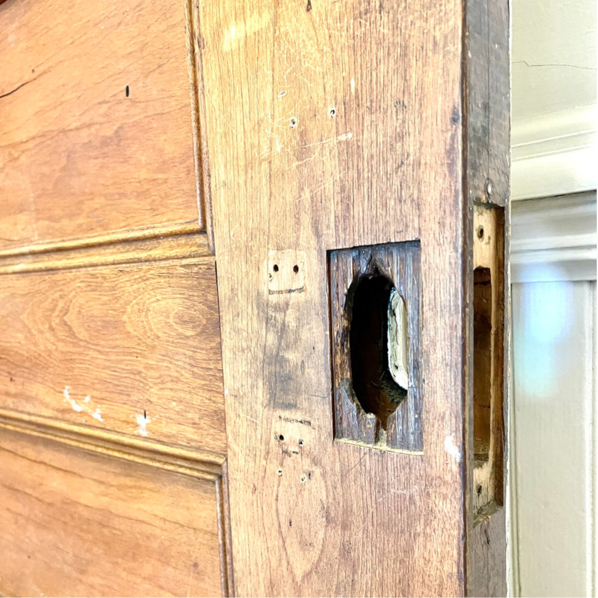 At an impressive 48 inches wide and nearly 8 feet tall, the scale alone makes this piece remarkable. Originally designed to glide into a wall pocket separating formal rooms — often between a parlour and dining room — doors of this width were used to create grand, flexible interiors that could open or close depending on the occasion.