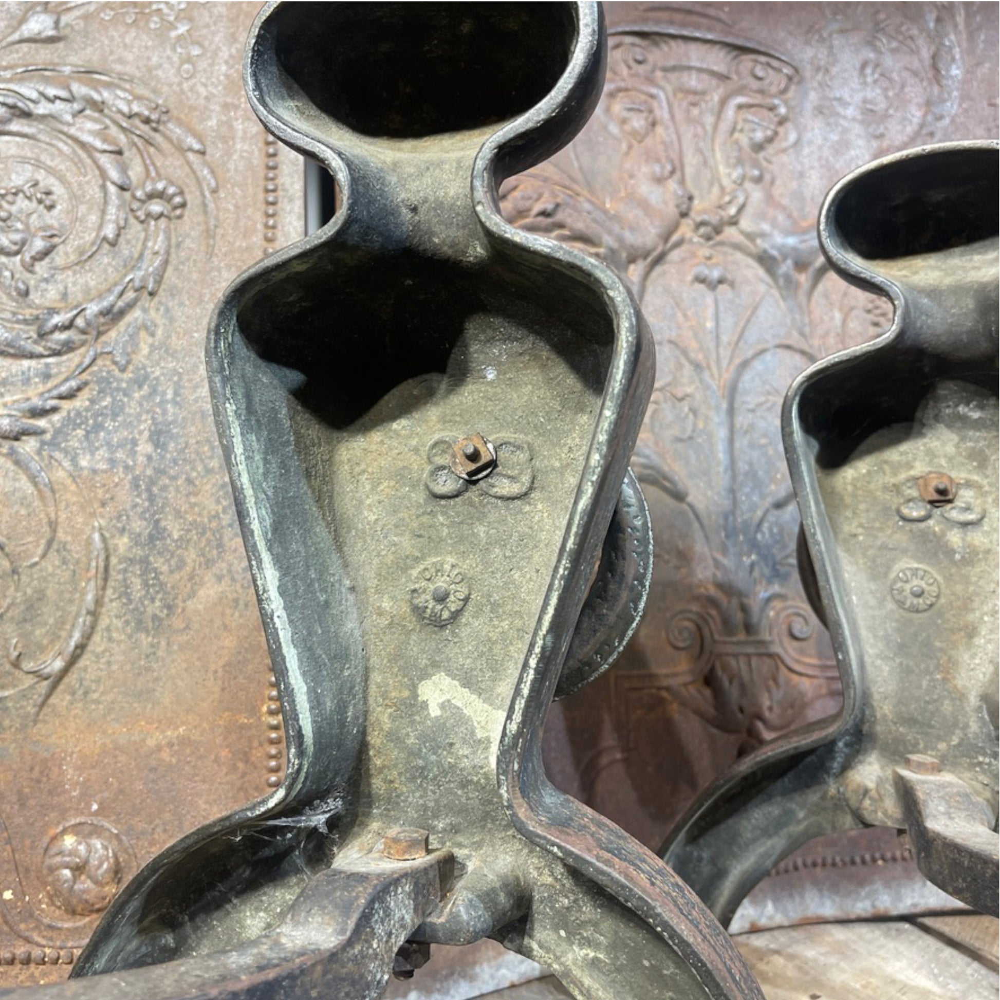 Arts And Crafts Cast Iron Andirons With Bronze Finish