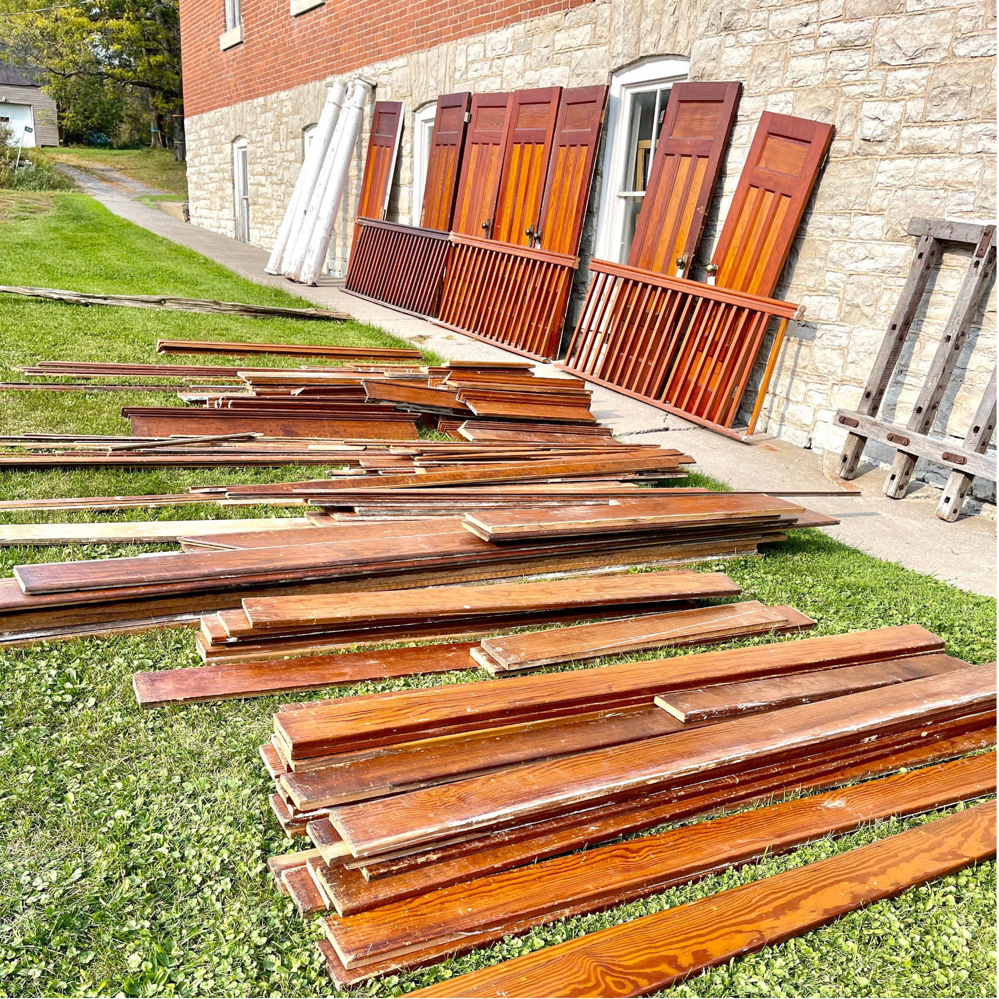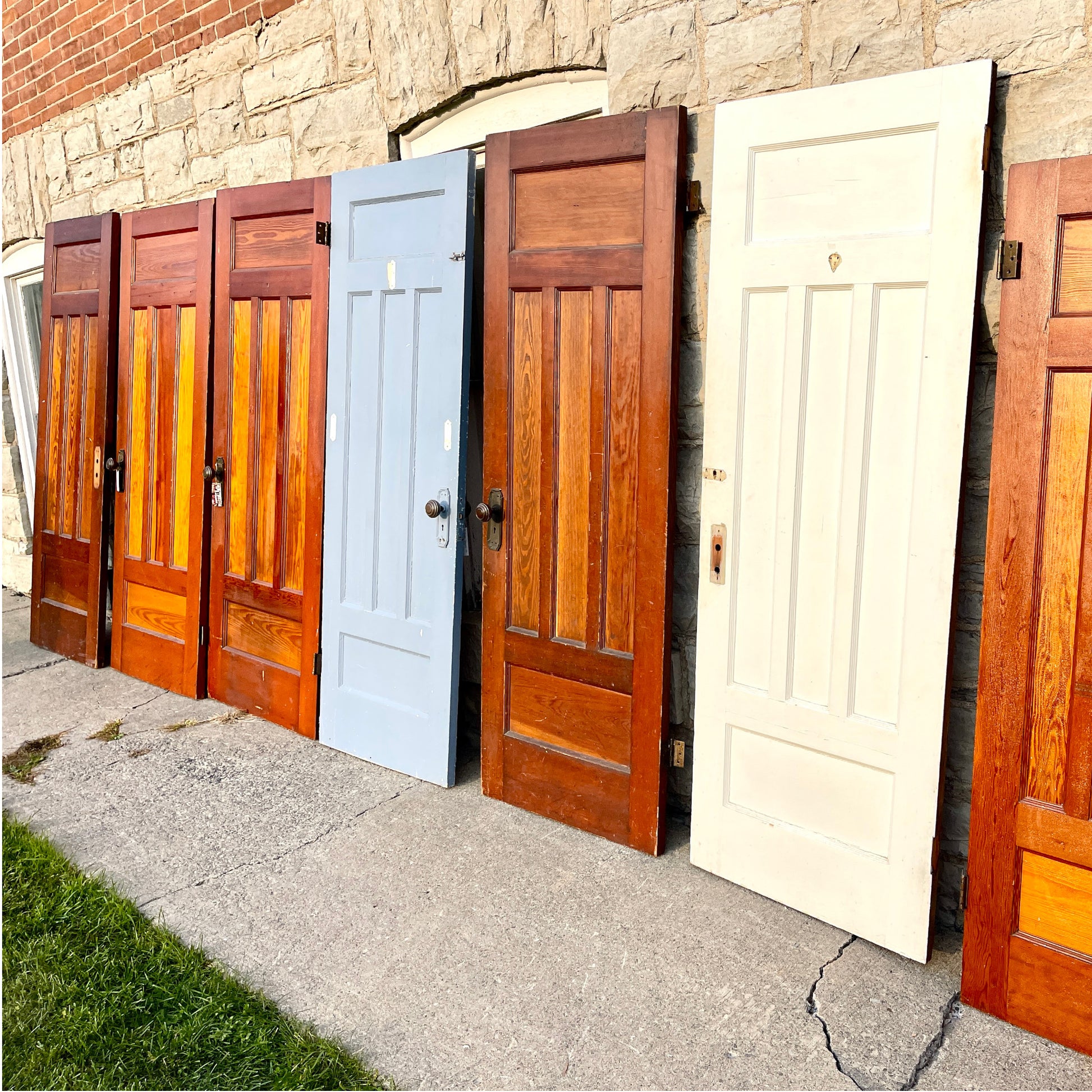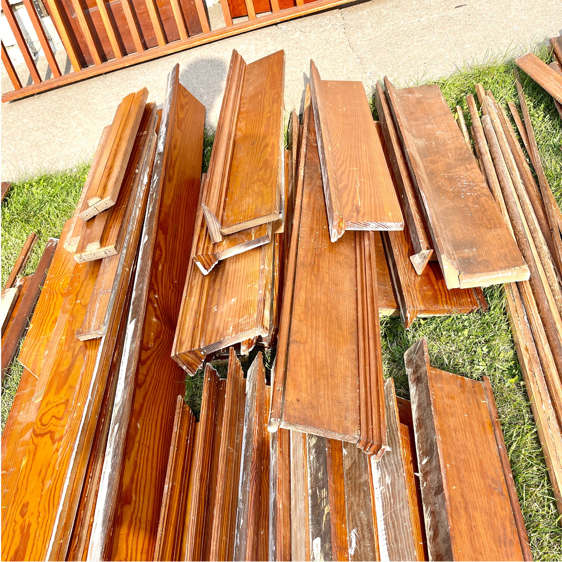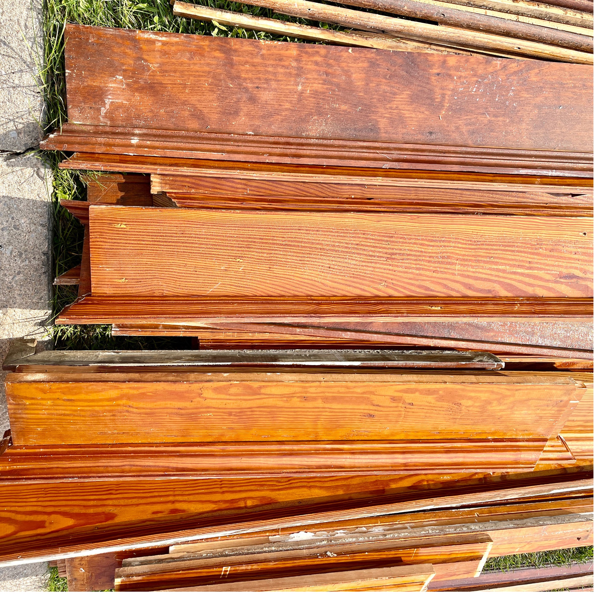 Arts & Crafts Doors and interior trim package in Douglas Fir. Salvaged from an Ottawa home, package includes 7 doors, door and window headers, door and window trim, baseboard, plate rails and railings. Ideal for a new build or a renovation.