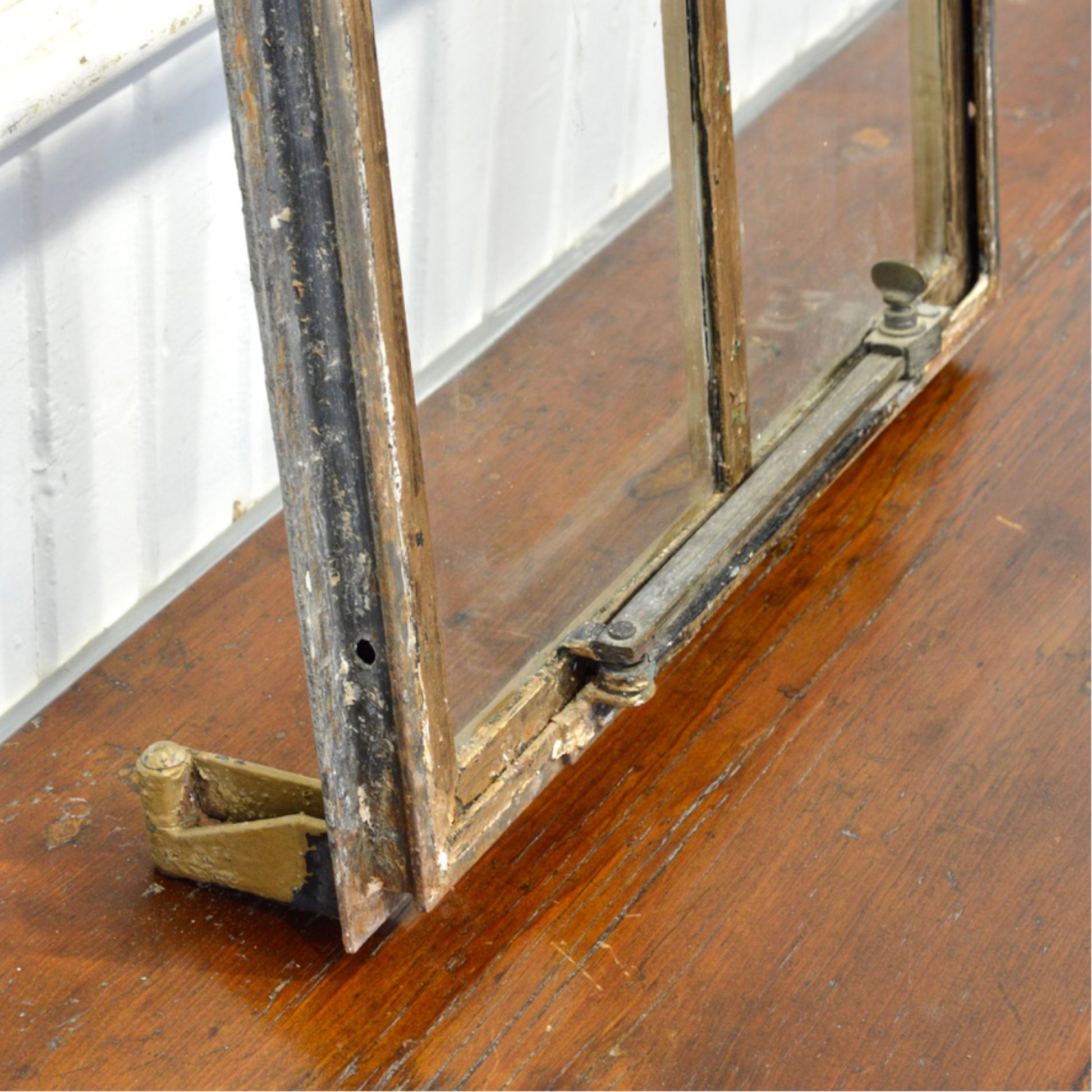 This operable unit includes original brass hardware, including a curved handle and intact closer.