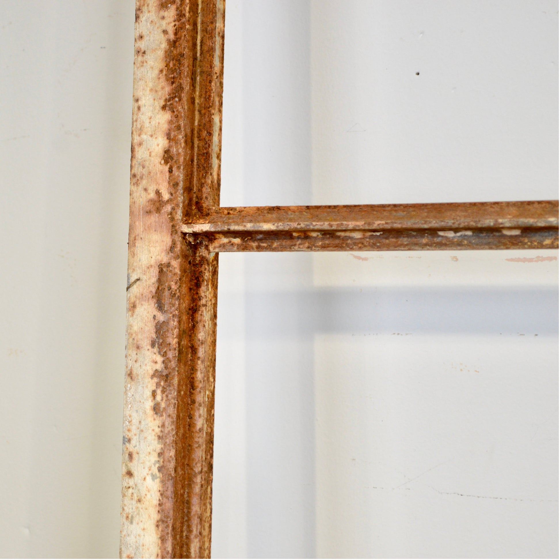 The glass and loose putty have already been removed, giving you a versatile blank canvas. Whether installed vertically or horizontally, this architectural salvage piece brings raw character and open sightlines to any environment. Leave the aged steel exposed and seal with a clear coat to preserve the white paint remnants, or refinish it to match your unique design vision.