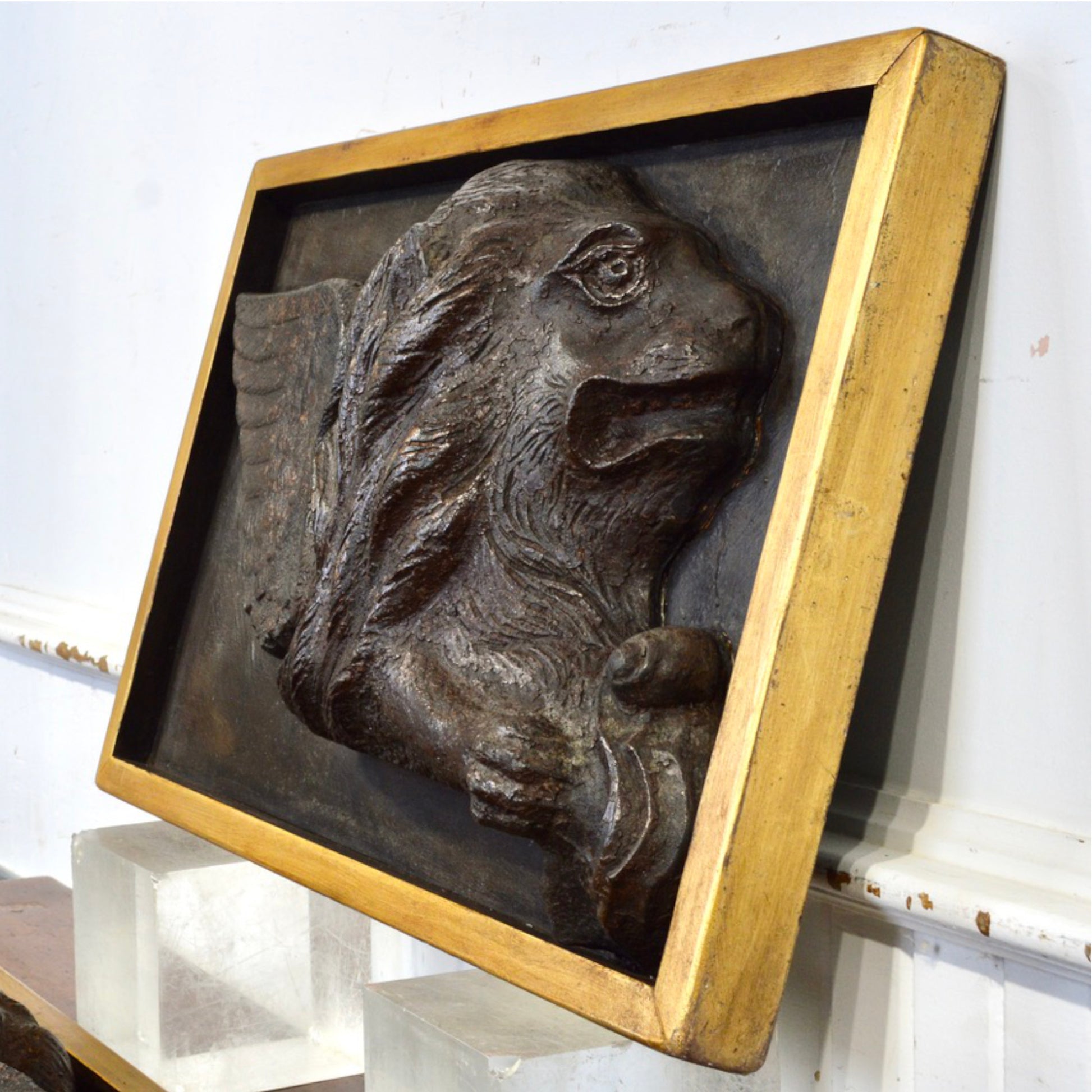 Pair of 19th Century Cast Iron Lions of St. Marc Reliefs | Gilt Framed Architectural Salvage