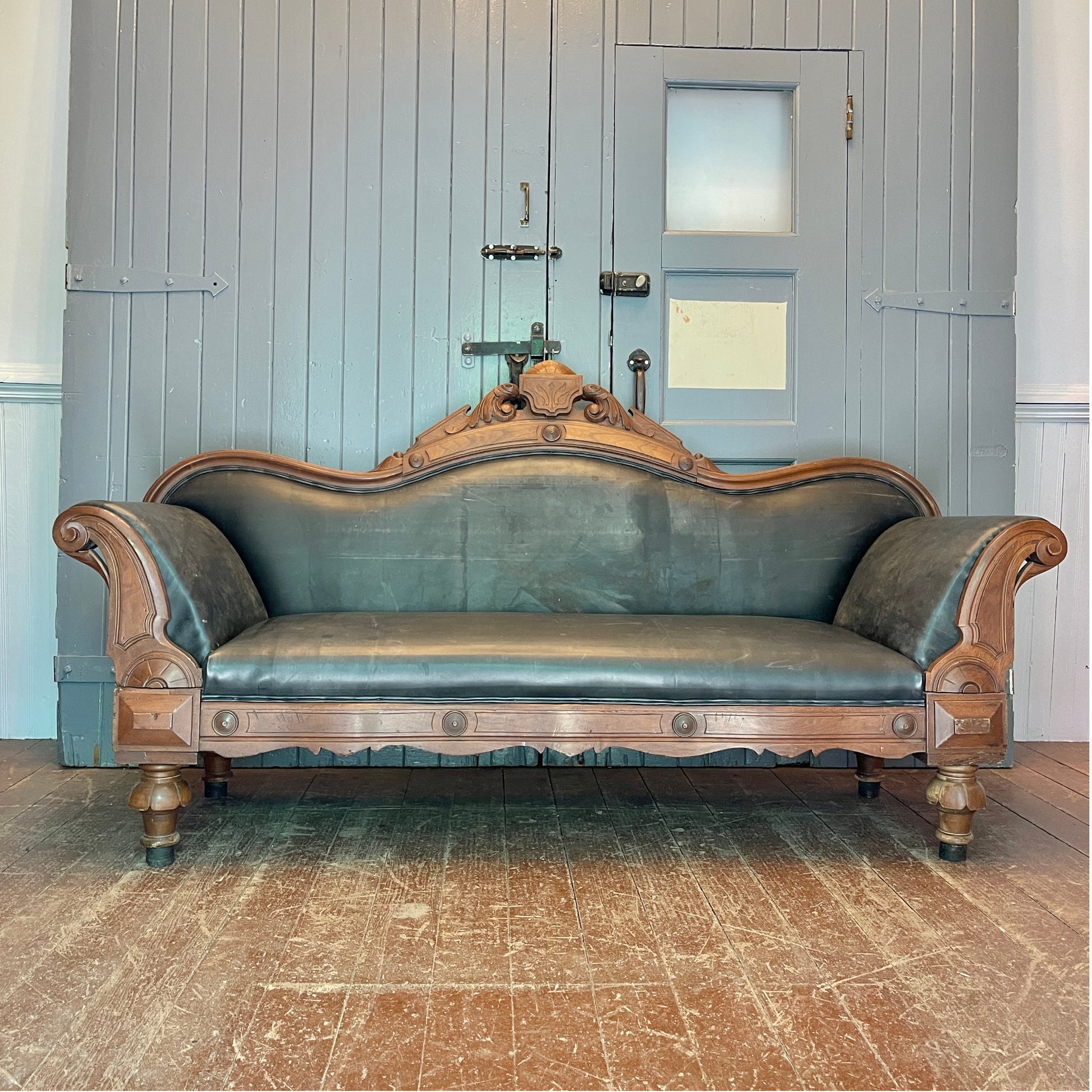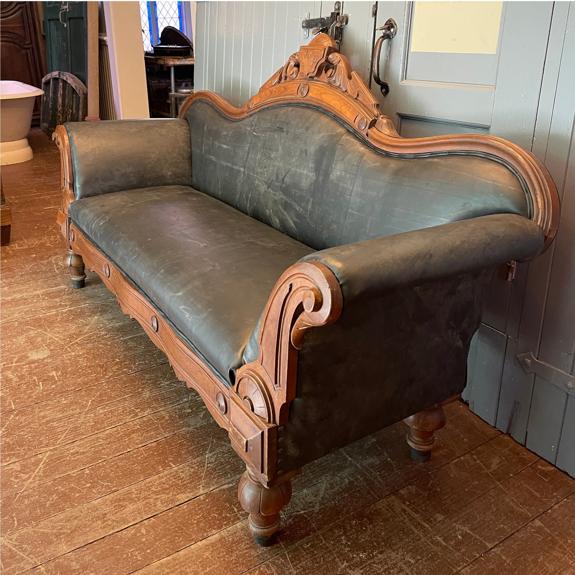 Victorian Sofa with Reclaimed Rubber Upholstery (c.1860s)