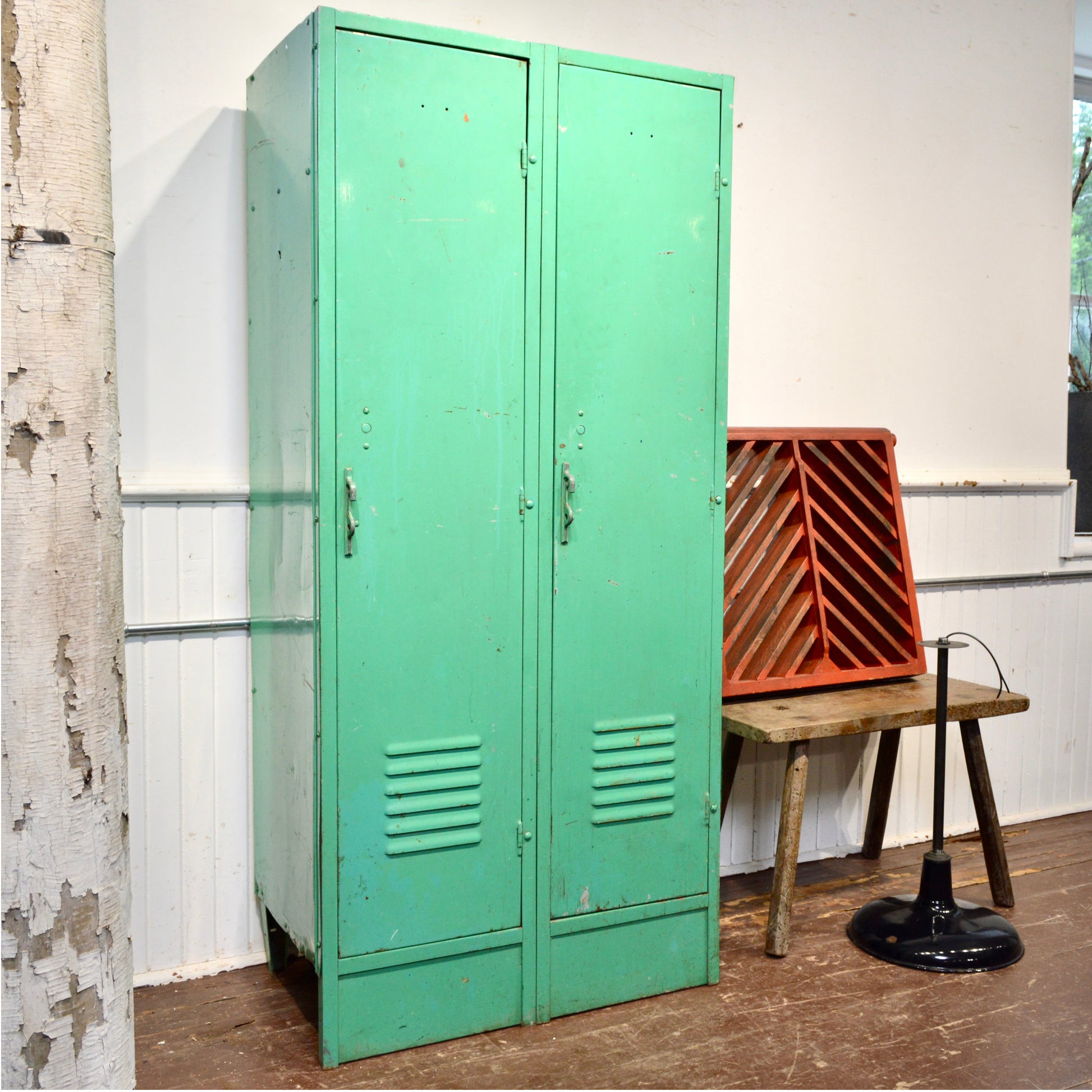 Vintage 1950s Double-Door School Locker in Emerald Green