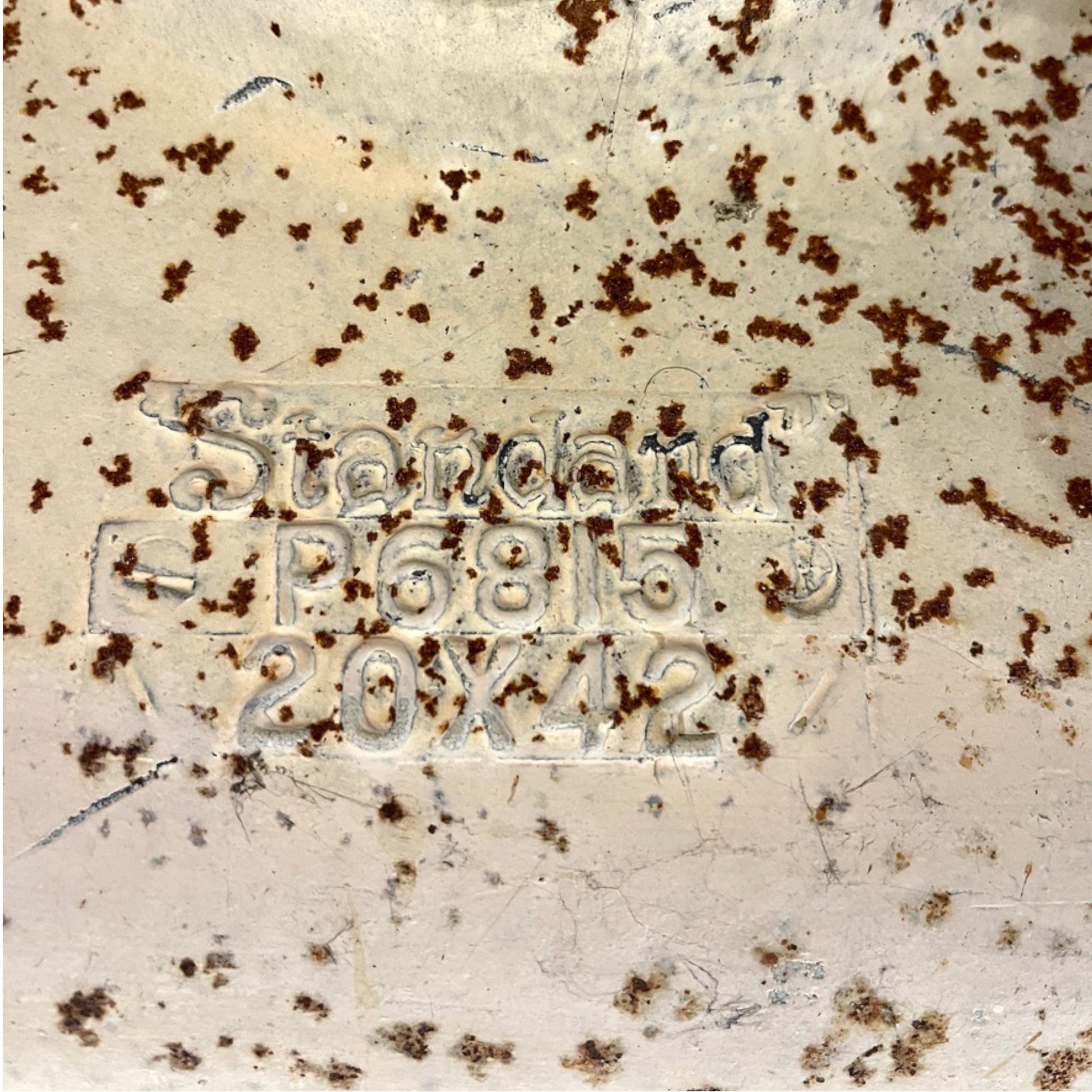 Add a touch of timeless charm to your kitchen or laundry room with this stunning cast iron farmhouse sink, cast by Standard in 1937. Measuring 42" x 20" with a 9" backsplash and a depth of 5.5", this piece embodies the quality and craftsmanship of a bygone era.